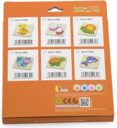 Mini Puzzle in Legno del marchio Viga sono progettati per sviluppare l'immaginazione e le abilità motorie dei bambini. Questi puzzle sono composti da quattro pezzi colorati che si inseriscono in una base di legno incavata. Sono realizzati con materiali sicuri per i bambini e per l'ambiente e verniciati con colori atossici.