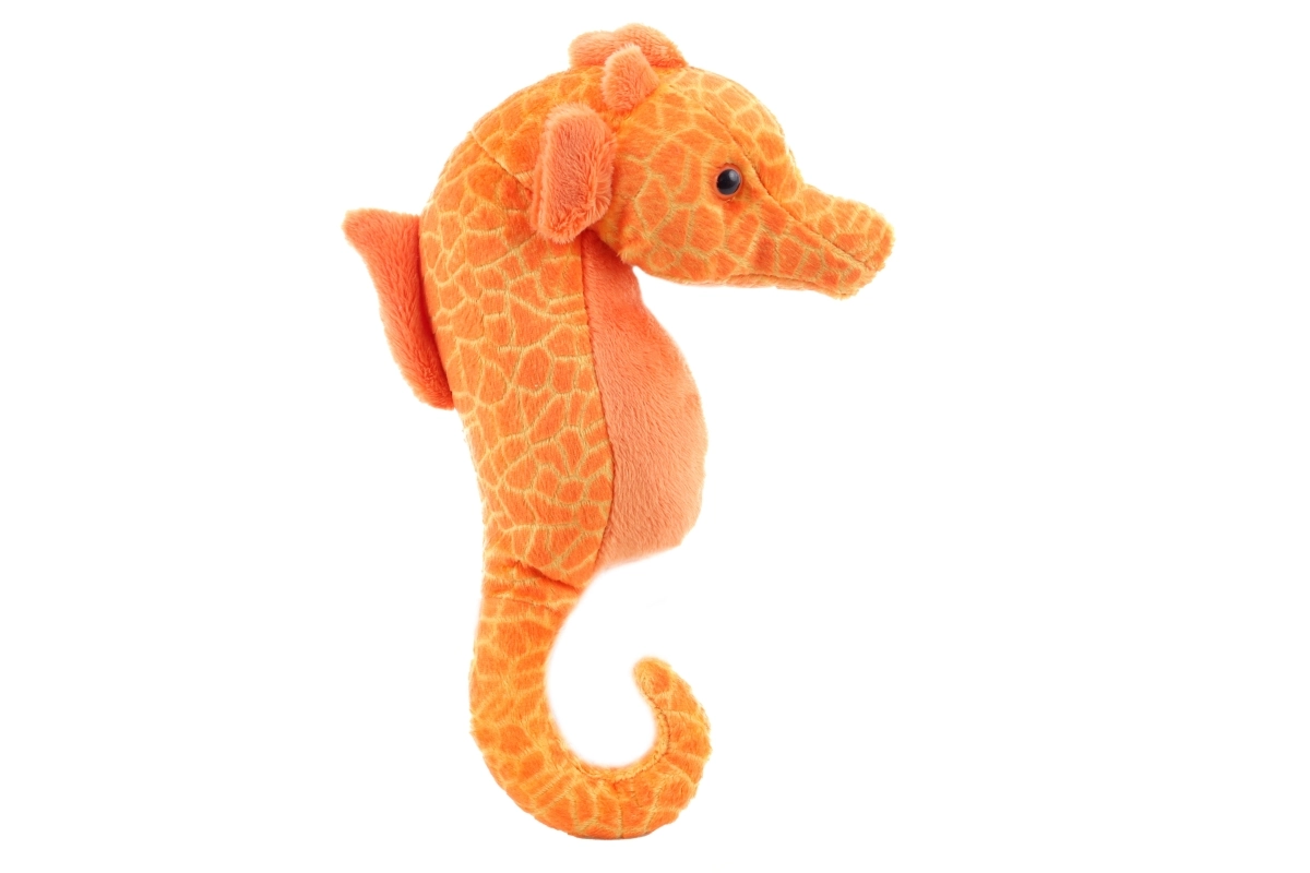 Questo cavalluccio marino di peluche porta un pezzetto di mondo sottomarino direttamente nella cameretta. Ha un corpo piacevolmente morbido, una coda arrotolata e dettagli vivaci che stimolano la fantasia durante il gioco. Grazie alla dimensione di circa 24 cm è ideale per le mani dei bambini e per i viaggi.