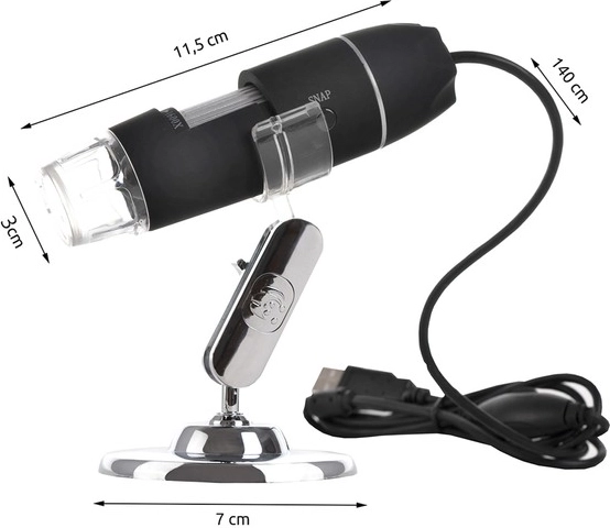 La testa ruota di 360 gradi, permettendo un adattamento preciso all'oggetto osservato. Il dispositivo può anche essere tenuto in mano.