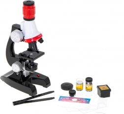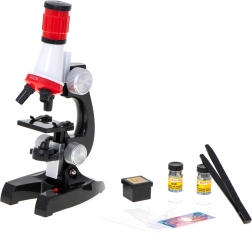 Include vari accessori, come pinzette, un preparato pronto su vetrino, quattro vetrini per preparare campioni propri, due provette e adesivi. Tutto ciò consente un'esplorazione senza problemi del mondo micro e stimola la curiosità e le capacità cognitive dei bambini.