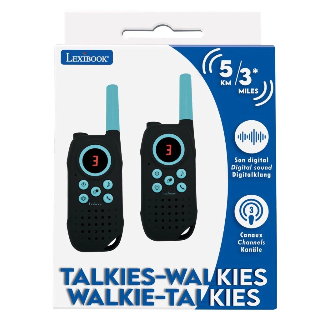 Rimanete in contatto durante i giochi, le gite e il campeggio grazie a queste ricetrasmittenti digitali per bambini con portata fino a 5 km, 3 canali di comunicazione e pulsanti intuitivi. Offrono audio digitale, display LED, luce LED e funzione squelch per la riduzione del rumore. La confezione include 2 unità con clip da cintura removibile.