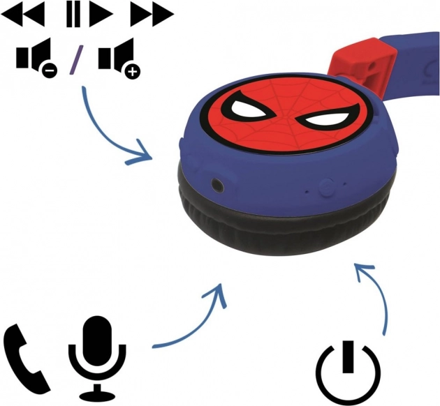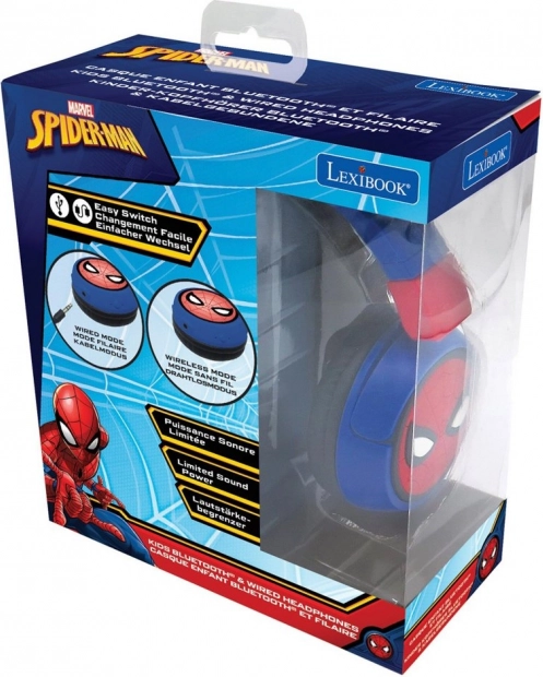 Le cuffie per bambini SPIDER-MAN offrono un ascolto confortevole sia in modalità Bluetooth 5.0 che tramite jack da 3,5 mm. Sono leggere, pieghevoli e dispongono di limitazione del volume a 85 dB per un ascolto sicuro. Grazie ai padiglioni morbidi, archetto regolabile e microfono integrato, sono ideali per musica, video e giochi a casa e in viaggio.