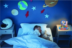 La sveglia serve anche come luce notturna con spegnimento automatico dopo 15 minuti e offre la riproduzione di suoni tematici.