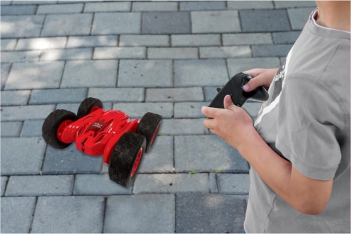 L’auto raggiunge una velocità fino a 12 km/h e la sua struttura robusta con pneumatici in gomma garantisce aderenza su varie superfici. In modalità demo esegue trick preimpostati con un solo pulsante. La batteria ricaricabile offre fino a 20 minuti di guida e si ricarica tramite cavo USB (incluso) in circa 210 minuti.