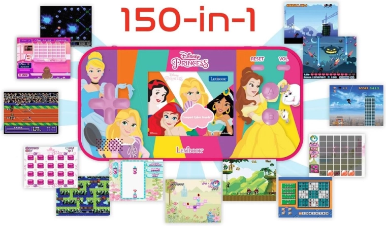La console tascabile DISNEY Princess Compact II Cyber Arcade è una compagna perfetta per i viaggi. Offre 150 giochi (140 classici + 10 a tema) che sviluppano riflessi, logica e creatività. Il display LCD da 2,5" a colori e il volume regolabile assicurano un’esperienza di gioco confortevole a casa e all’aperto.