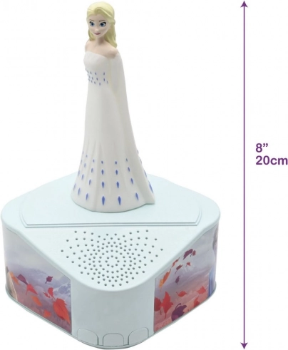 La figura di Elsa in cima all'altoparlante illumina la stanza al ritmo della musica riprodotta, creando un'atmosfera incantevole.