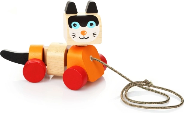 Il giocattolo di legno da traino, progettato a forma di allegro gattino, è ideale per il divertimento e lo sviluppo delle abilità motorie dei bambini. Il giocattolo è dotato di un corpo mobile e ruote, che permettono movimenti fluidi e divertenti quando viene trainato con la cordicella. Il design colorato attira l'attenzione dei bambini e li incoraggia al gioco attivo.