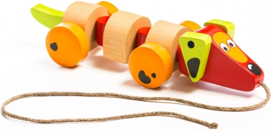 Grazie alle rotelle e al filo, il giocattolo è facilmente manovrabile e i bambini possono tirarlo ovunque vadano.