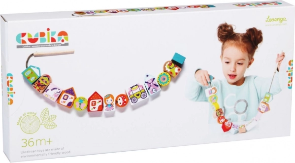 Favola da infilare CUBIKA è un set resistente e sicuro destinato ai bambini sopra i 3 anni. Utilizza legno coltivato ecologicamente e colori atossici, garantendo sicurezza e qualità. Questo set giocoso favorisce: