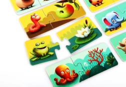 Immergetevi nell’apprendimento giocoso con il puzzle Puzzlika La mia casa. I bambini collegano l’immagine dell’animale alla sua tipica abitazione sviluppando in modo naturale il pensiero logico, il vocabolario e la coordinazione occhio–mano. I pezzi grandi e facili da afferrare sono ideali per le manine.