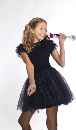 Il corpo traslucido del microfono si illumina con luci multicolore creando un’atmosfera magica per le piccole stelle.