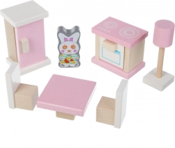 Entra nel mondo della fantasia con i Mobili in legno per bambole Cucina, un bellissimo set di 10 pezzi che conduce i tuoi bambini in un mondo di infinita creatività. Il set include: