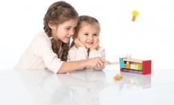 Ogni colpo con il martelletto attiva il meccanismo e il clown salta. I bambini allenano riflessi, precisione e pazienza e comprendono il principio di causa ed effetto.
