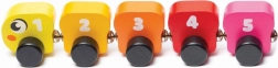 Dieci pezzi numerati 1–10 formano una fluida scala arcobaleno. I bambini consolidano l’ordine dei numeri e la distinzione dei colori attraverso il gioco naturale.
