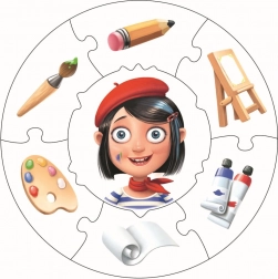 I puzzle educativi Puzzlika Professioni 1 offrono ai bambini un divertimento intelligente che favorisce lo sviluppo di abilità importanti. Con 21 pezzi solidi si compongono tre scene rotonde separate con le professioni – medico, artigiano e pittrice. Grazie al cartone multistrato di qualità con finitura lucida, i pezzi sono piacevoli al tatto, facili da pulire e durevoli.