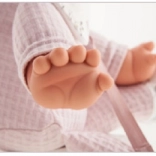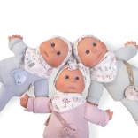La bambola è realizzata in vinile morbido e cotone organico, garantendo sicurezza e comfort durante il gioco.