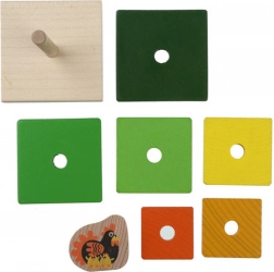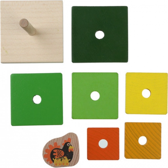 La piramide in legno con gallinella è un giocattolo educativo senza tempo che introduce i bambini a forme, dimensioni e sfumature cromatiche in modo ludico. Otto pezzi solidamente rifiniti si impilano su un perno centrale per formare una piramide regolare; i bambini esercitano l’ordinamento per grandezza e colore e migliorano la coordinazione occhio–mano.