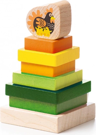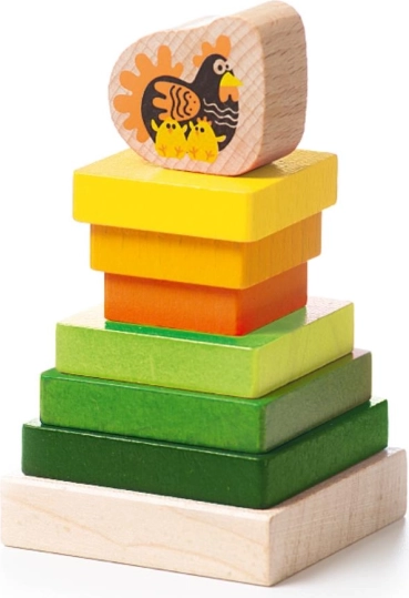 Scoprite un puzzle in legno di qualità per i più piccoli: la piramide colorata con gallinella di CUBIKA. Il giocattolo, in acero e faggio ecologici, favorisce la motricità fine, il pensiero logico e il riconoscimento dei colori. I pezzi si impilano a formare una piramide in una sequenza cromatica fluida, sviluppando coordinazione e creatività. Colori a base d’acqua sicuri, produzione europea e certificazione TÜV secondo la norma EN 71.