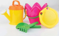 • Dotazione completa: secchiello – tulipano, annaffiatoio 1,2 l, setaccio, paletta, rastrellino