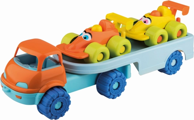 Porta gioia nel mondo dei bambini con il nostro set di macchinine allegre su rimorchio. Questo set è ideale per i più piccoli grazie alle forme arrotondate che garantiscono sicurezza durante il gioco.