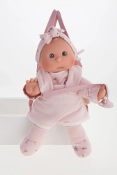 Il produttore Antonio Juan pone grande attenzione alla produzione ecologica: per alcuni modelli utilizza completini in cotone biologico, raccolto a mano e coltivato senza trattamenti chimici. La bambola è fornita in un’elegante scatola regalo, perfetta come dono per compleanni o Natale.
