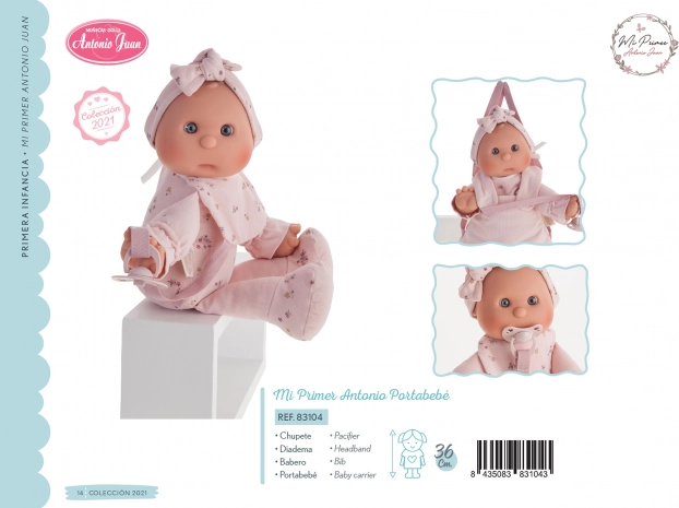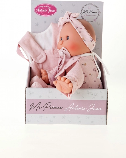 La dolce bambola del marchio Antonio Juan è ideale come prima bambola per i più piccoli. Ha un corpo morbido in tessuto, una testa e arti in vinile morbido e include un ciuccio magnetico. Alcuni completini sono in cotone biologico, il tutto confezionato in una scatola regalo. Dimensione 36 cm, consigliata dai 18 mesi.