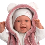 Adorabile bambola realistica con corpo in tessuto morbido, che parla e ride, farà felice ogni bambino. Ideale per giocare e collezionare.