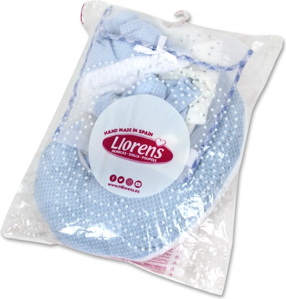 Il completo è realizzato in Spagna e arriva in una rete decorativa da regalo con gruccia in cartone; insieme al cuscino è riposto in un involucro protettivo – ideale come regalo. Grazie al taglio preciso si adatta alle bambole LLORENS da 40–42 cm e rende più semplice il frequente cambio d’abito durante il gioco quotidiano.