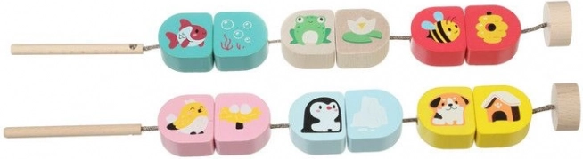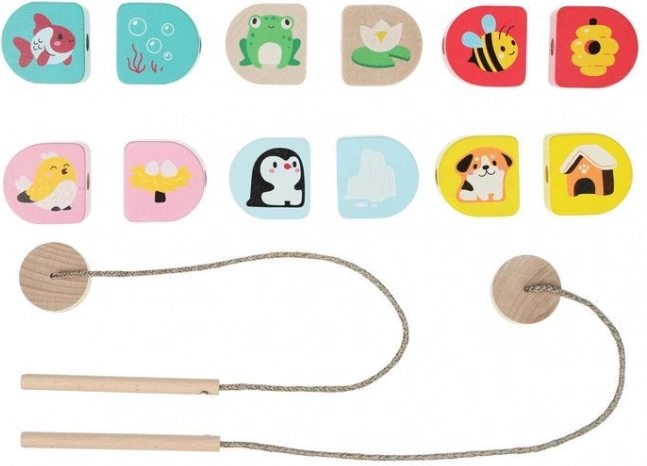 Durante l’infilatura, i bambini collegano gli animali all’ambiente in cui vivono, sviluppando il ragionamento logico e il vocabolario. Ideale per un apprendimento giocoso ogni giorno.