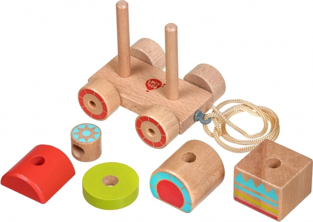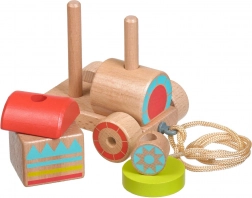 Una volta assemblato, il trenino può partire all’avventura. La cordicella di 45 cm è ideale per i piccoli esploratori.