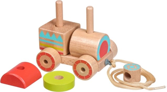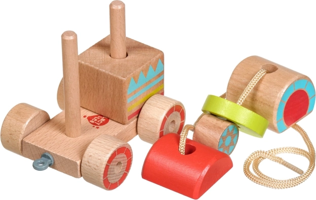 Il trenino di legno da tirare unisce il look classico a elementi educativi moderni. I bambini impilano i pezzi colorati nei punti giusti, allenano la presa e scoprono forme e colori di base. Dopo il montaggio, possono tirare il trenino con la cordicella e sviluppare così la coordinazione del passo.