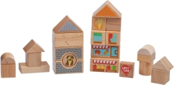 Forme e stampe diverse (finestre, tetti, vetrine) permettono ai bambini di costruire casette, torrette e intere strade proprio come dettato dalla loro fantasia.