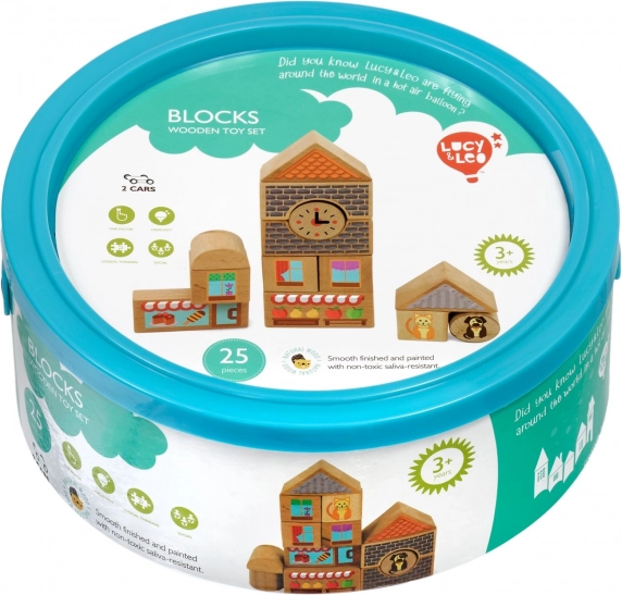 Scopri il fascino della costruzione creativa con il set in legno Lucy & Leo città. Il set include 25 pezzi in legno di alta qualità, compresi 2 macchinine su ruote, forme e colori diversi per costruire casette e stradine. Elementi illustrati come finestre, tetti e vetrine dei negozi stimolano la fantasia e il gioco tematico. Il giocattolo supporta motricità fine, pensiero logico e creatività, e dopo il gioco si ripone facilmente nel pratico contenitore rotondo con coperchio e maniglia.