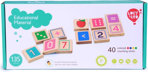 Scopri un modo divertente per avvicinarti alla matematica con il set in legno Lucy & Leo per bambini dai 3 anni. Include 135 elementi per i primi calcoli: cifre, segni matematici, bastoncini colorati per contare e cartoncini con immagini. Sostiene il pensiero logico, il riconoscimento dei numeri e i concetti di maggiore/minore attraverso il gioco.