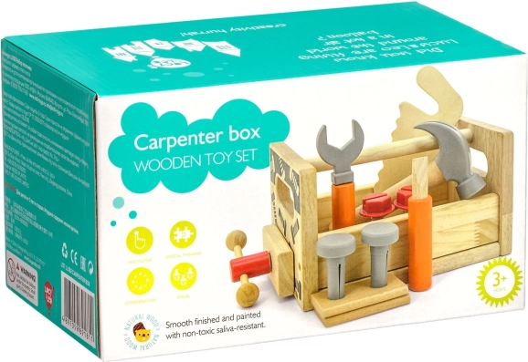 Scopri un gioco divertente ed educativo per piccoli artigiani: set di attrezzi in legno con banco da lavoro del marchio LUCY & LEO. La cassetta compatta, che capovolta si trasforma in un banco, contiene 15 pezzi tra cui martello, seghetto, viti e morsetto. Il gioco sviluppa motricità fine, creatività e pensiero logico, ed è realizzato in legno di qualità con finitura liscia per un gioco sicuro.