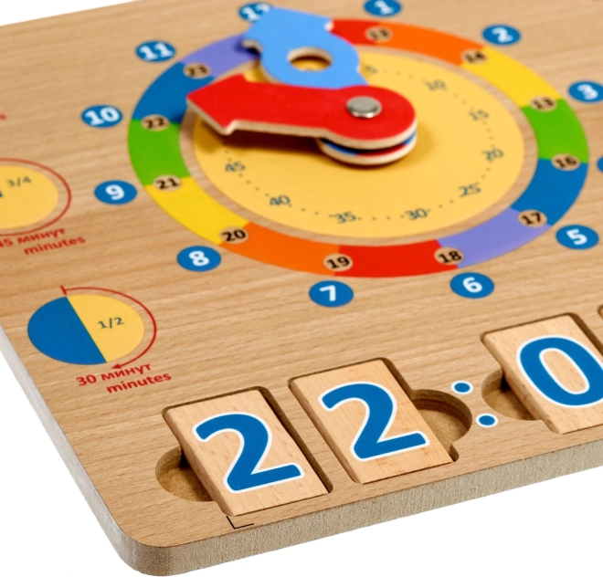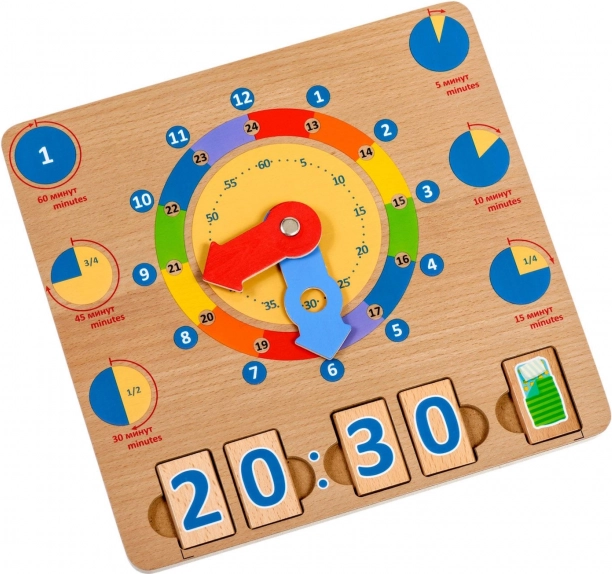 La tavola di gioco in legno Impariamo l’ora è un ottimo strumento didattico che sostiene l’apprendimento naturale attraverso il gioco. Le grandi lancette colorate e i segmenti temporali ben distinti permettono ai bambini di comprendere più facilmente ore, minuti e attività quotidiane in orari specifici.