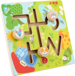 Il labirinto in legno Valle soleggiata offre ai bambini la gioia della scoperta e dell’apprendimento. La tavola illustrata con stagno e aree verdi coinvolge i piccoli nel gioco, dove cane, gatto e topolino avanzano verso i propri obiettivi. Grazie alle scanalature fluide le pedine scorrono facilmente e il gioco risulta sicuro e intuitivo.