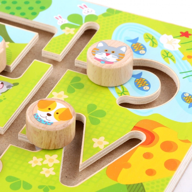Lo spostamento degli animaletti lungo le scanalature allena la presa, la coordinazione occhio–mano e la precisione dei movimenti, ideale per i bimbi in età prescolare.