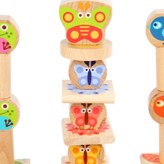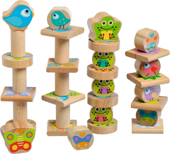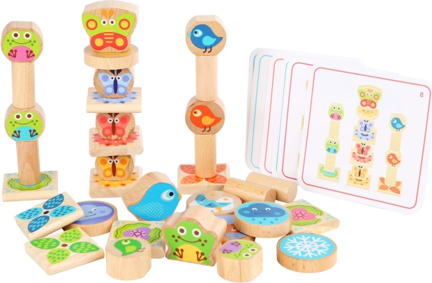 I blocchi sono realizzati in legno resistente, con bordi arrotondati e superfici lisce piacevoli al tatto. Il gioco favorisce concentrazione, ragionamento logico e riconoscimento delle forme, mentre i bambini allenano pazienza e precisione costruendo torri e motivi stabili.