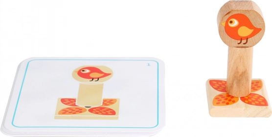 I bambini ricreano i motivi seguendo le schede fronte-retro e allenano logica, concentrazione e pazienza. I modelli procedono da combinazioni più semplici a più impegnative.