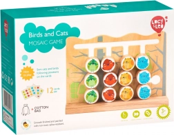 Grandi pioli facili da afferrare con immagini di uccelli e gatti motivano i bambini a giocare ripetutamente, allenando motricità fine e colori.
