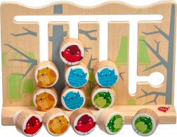 Questo gioco in legno di qualità offre uno scorrimento intuitivo dei pioli colorati con animaletti lungo scanalature fresate. Grazie a 6 carte fronte-retro con modelli, i bambini esercitano coordinazione occhio–mano, pazienza e concentrazione. Al termine del gioco, tutti i pezzi possono essere riposti facilmente nel sacchetto di lino.