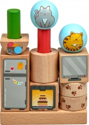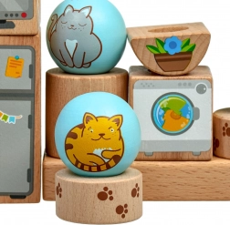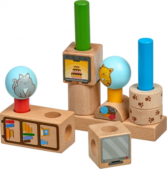 - Pezzi in legno robusti con allegre illustrazioni di gatti e ambiente domestico