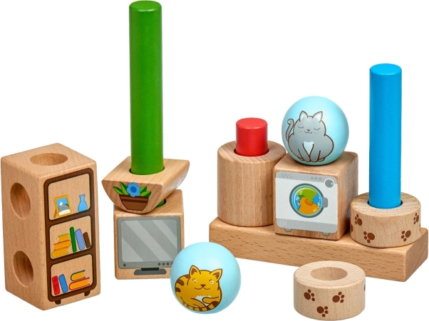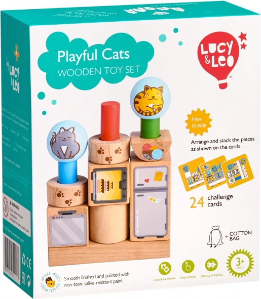 Scopri il creativo puzzle in legno Gatti Giocherelloni di Lucy & Leo, che sviluppa il pensiero logico, la motricità fine e la fantasia. I bambini compongono colorate forme geometriche con motivi di gattini e arredi su pioli, seguendo 24 schede. Dopo il gioco, tutto si ripone facilmente nel sacchetto di lino – un giocattolo educativo ideale, ricco di divertimento e apprendimento.