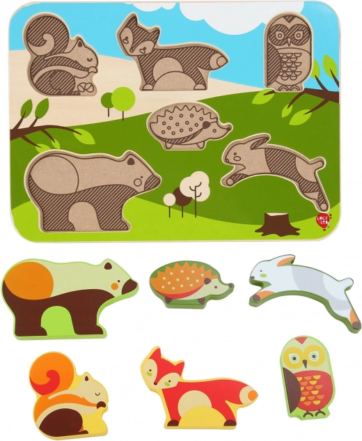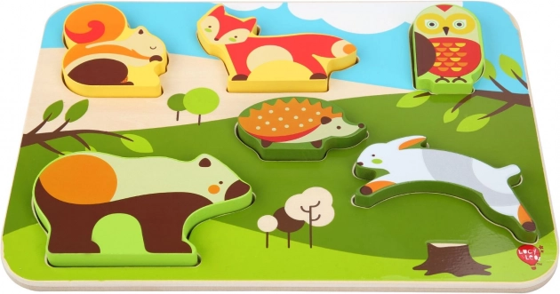 Il puzzle ad incastro Lucy & Leo con tema animali del bosco offre 7 colorati pezzi in legno senza pomelli, che i bambini possono afferrare facilmente e inserire nelle posizioni corrispondenti. Ogni pezzo è sufficientemente spesso da stare in piedi da solo, ampliando le possibilità di gioco e fantasia.