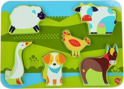 Il puzzle in legno a tema fattoria conquisterà bambine e bambini con colori intensi e una superficie piacevolmente liscia. Ognuno dei 7 animali ha la sua forma precisa e il bambino lo inserisce facilmente nell’intaglio corrispondente. Grazie a dimensioni e spessore, i pezzi si impugnano bene e sono sicuri per il gioco autonomo.