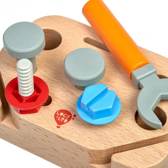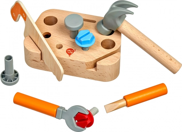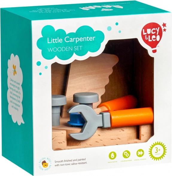 Il set di attrezzi in legno “Piccolo falegname” del marchio Lucy & Leo è ideale per i piccoli tuttofare dai 3 anni in su. Grazie al supporto organizzato (11 × 16,5 × 4,5 cm), i bambini hanno sempre tutti gli strumenti a portata di mano. La combinazione di legno di qualità e plastica resistente assicura un utilizzo sicuro e duraturo.
