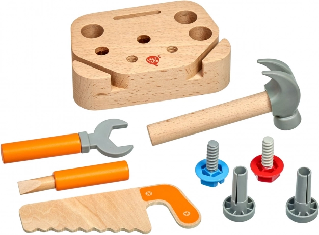 Scopri il mondo creativo dei mestieri con il set di attrezzi per bambini Lucy & Leo “Piccolo falegname”. Questo set in legno di alta qualità con 9 pezzi include un supporto e strumenti di base – sega, martello, chiave e cacciavite – completati da viti e chiodi. Il giocattolo è realizzato in legno e plastica sicuri, con una finitura liscia, e sviluppa al meglio la motricità fine, la coordinazione mano-occhio e il pensiero creativo.