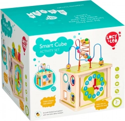 Questo cubo motorico in legno 5in1 LUCY & LEO di alta qualità è un gioco educativo ideale per i piccoli esploratori. Offre diverse attività in uno: labirinto di perline sulla parte superiore, orologio con lancette mobili, due inserimenti di forme geometriche e abaco colorato. Grazie alla progettazione accurata sviluppa coordinazione occhio–mano, concentrazione e rappresentazione spaziale.