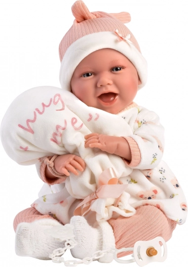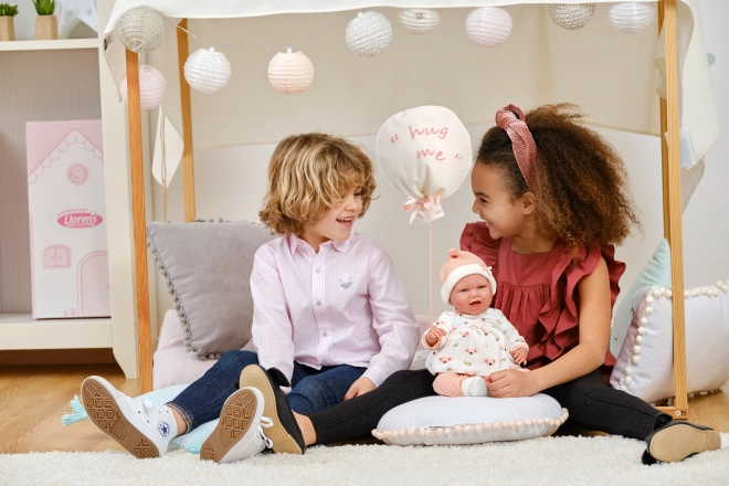 Elegante set di 4 capi per bambole NEW BORN di dimensione 40–42 cm in delicate tonalità pastello, materiali caldi e un tenero doudou a forma di palloncino con la scritta “hug me”. Perfetto per cambi d’abito confortevoli, gioco realistico di cura e come regalo per piccoli amanti delle bambole. Prodotto in Spagna, consigliato dai 3 anni.